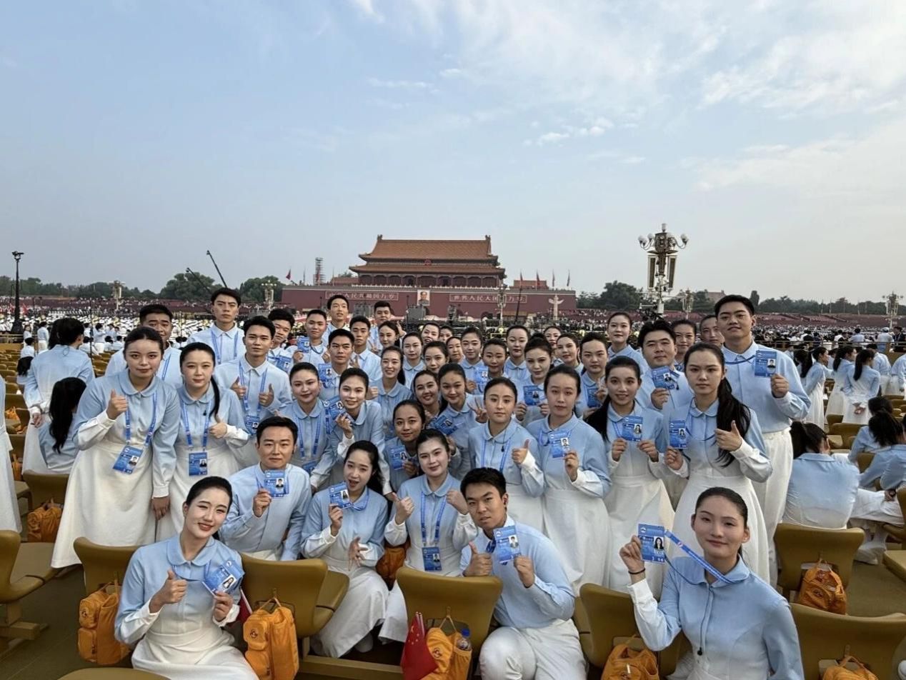 “听说你要参加阅兵,我们都特别为你骄傲!”这是翁婉姣家人得知她将参与纪念中国人民抗日战争暨世界反法西斯战争胜利80周年大会时最真挚的心声。这份骄傲,承载着翁婉姣一家的独特记忆:1959年,翁婉姣的爷爷奶奶参加国庆阅兵,1984年,她的父亲参加国庆阅兵。2025年9月3日,已经是2022级生命与环境科学学院本科生的翁婉姣,作为中央民族大学参与广场合唱团的88名师生之一站在天安门广场,接受祖国的检阅。