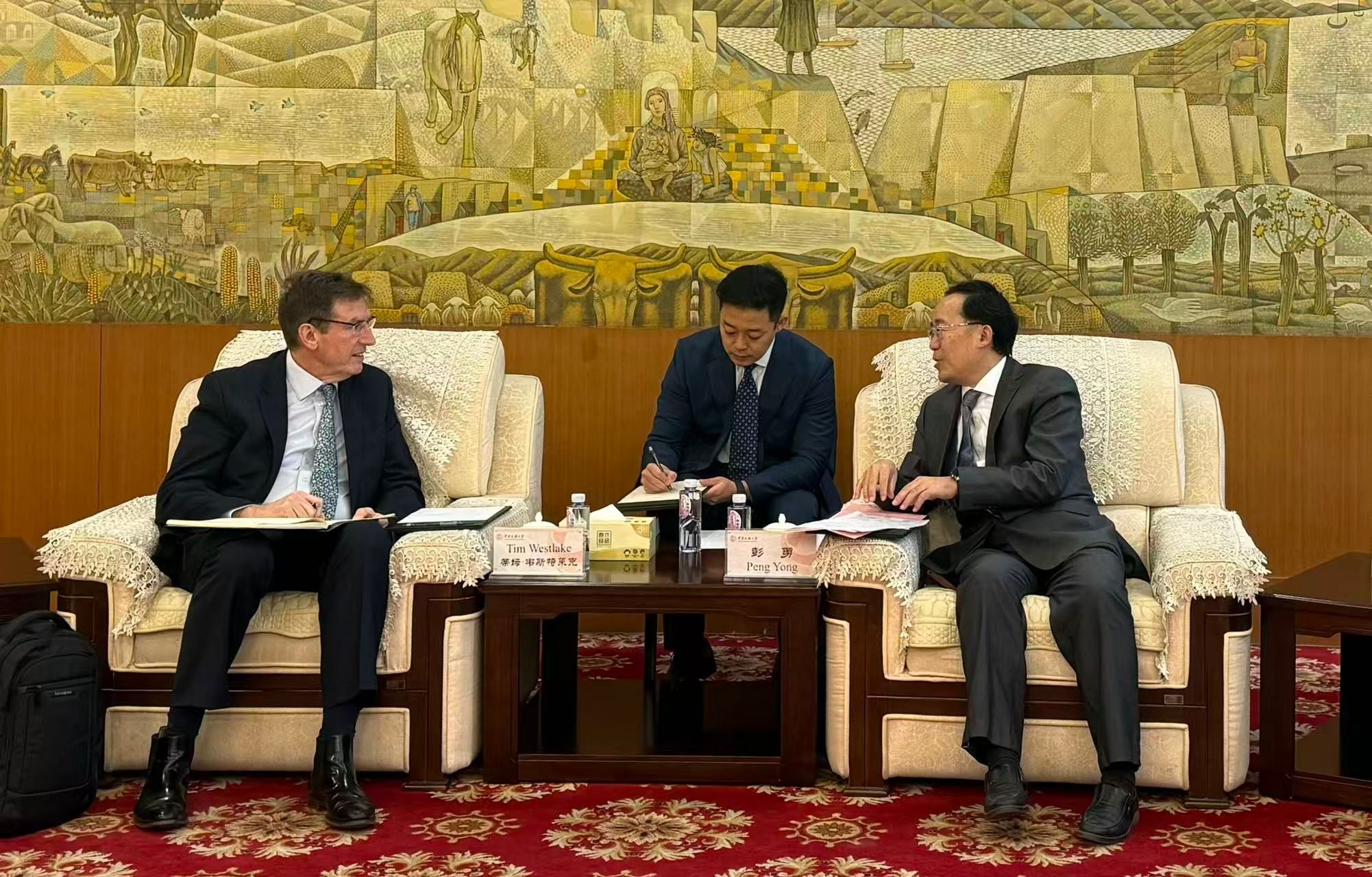 新闻网讯 11月3日,英国密德萨斯大学首席运营官蒂姆·韦斯特莱克教授(Tim Westlake)一行到访中央民族大学,校党委常委、副校长彭勇在海淀校区中慧楼会见来宾。