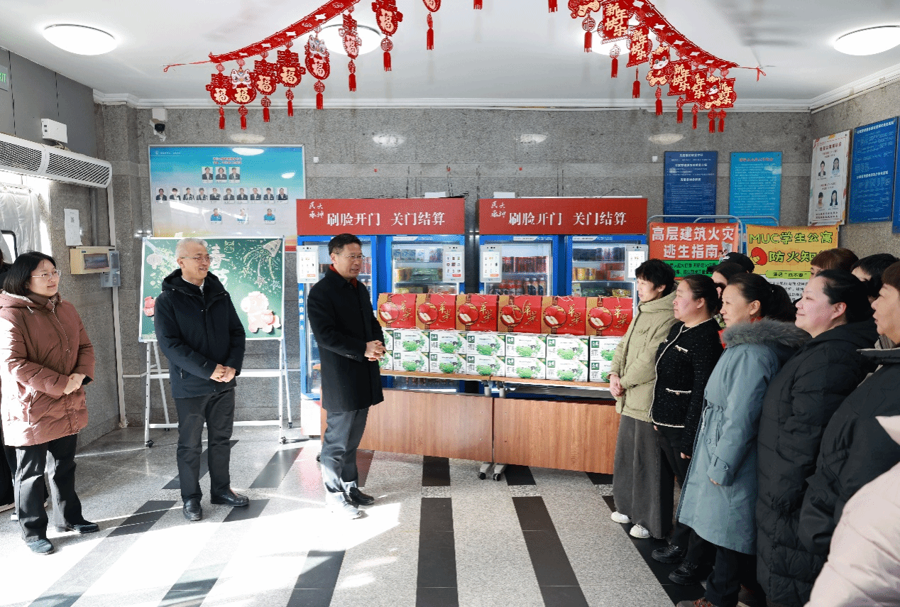 在海淀校区东西门,理工楼和学生食堂,校领导慰问在岗值守的保安人员、楼宇值班员、保洁员和食堂员工,对他们春节期间留校服务、坚守岗位和辛勤付出表达感谢,并向他们致以春节祝福和美好祝愿。校领导还走进学生宿舍,与留校学生亲切交流,关心他们的假期安排和生活学习情况,并慰问宿舍管理员工,祝福他们能共度愉快而充实的春节。