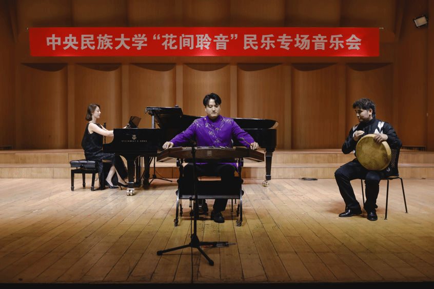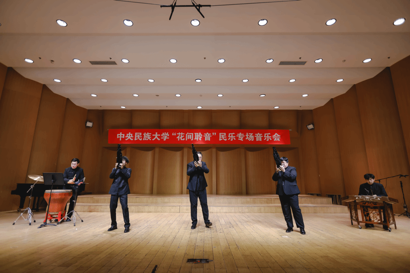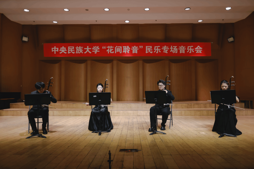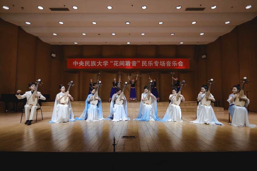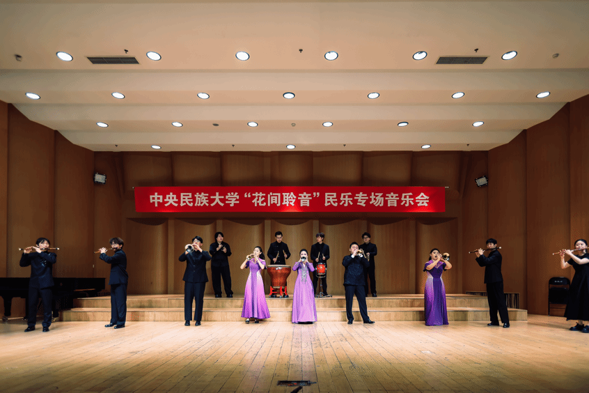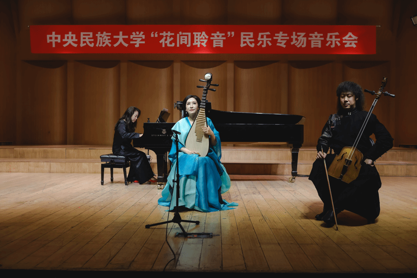 新闻网讯 3月31日晚,中央民族大学 “音乐中的大思政课” 品牌活动——“花间聆音”民乐专场音乐会在海淀校区中慧楼音乐厅举办。音乐会由党委学生工作部、学生处主办,音乐学院承办,校内专家、专业教师与青年学子同台演绎,围绕 “丝竹传雅韵,美育润初心;音乐铸同心,思政启新程” 的理念,将中华传统民乐艺术与思政教育内涵有机融合。校党委常委、副校长赵丽芳出席音乐会。